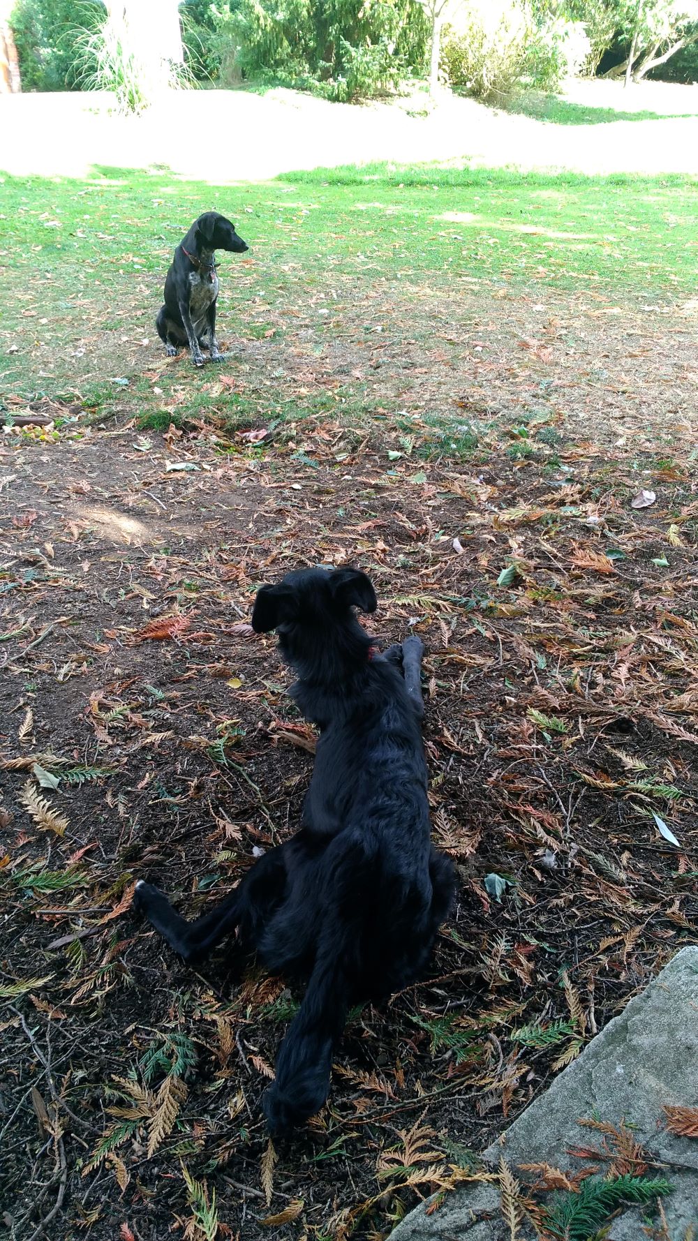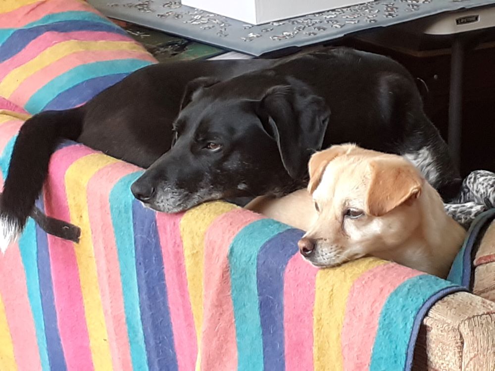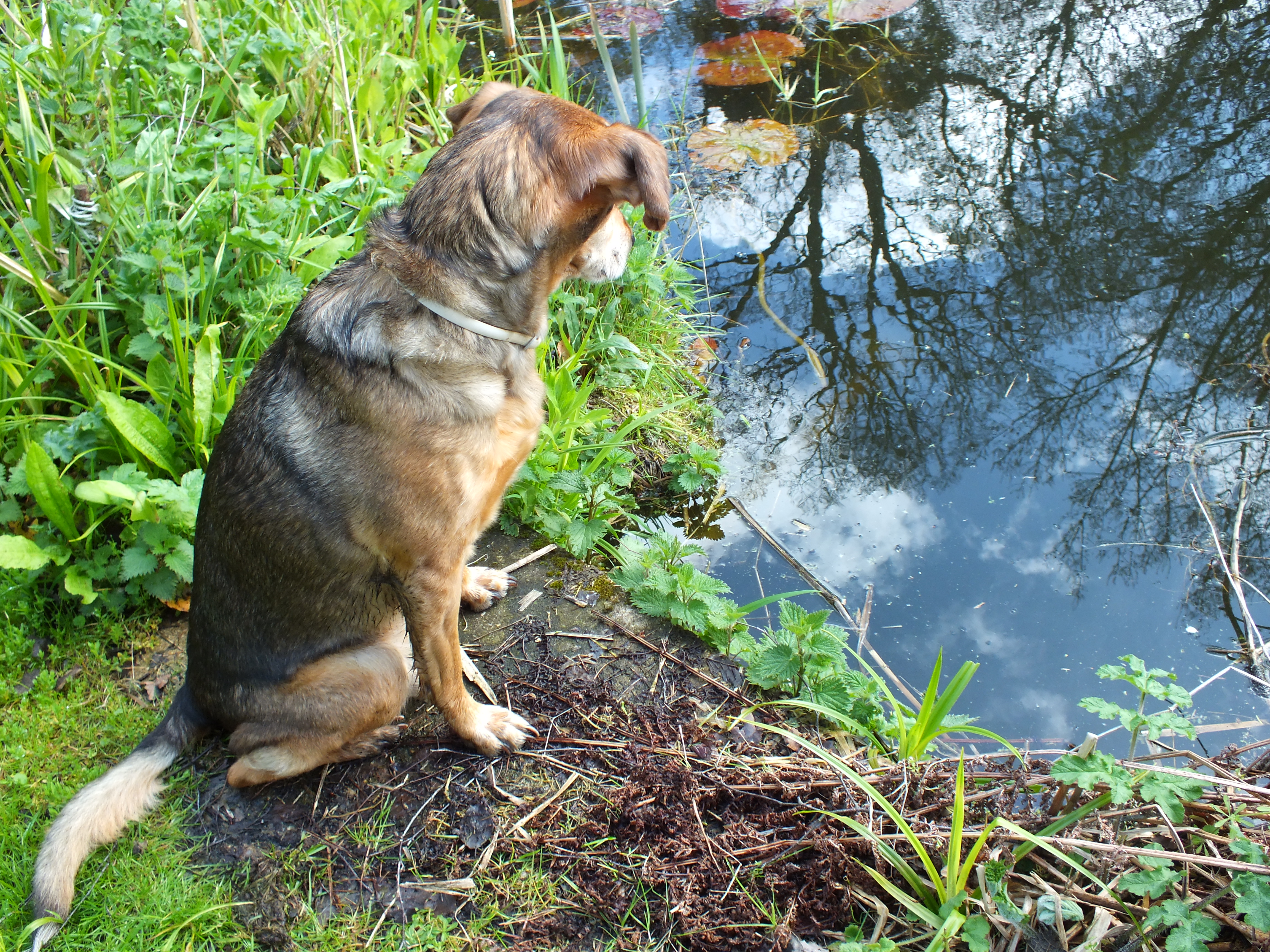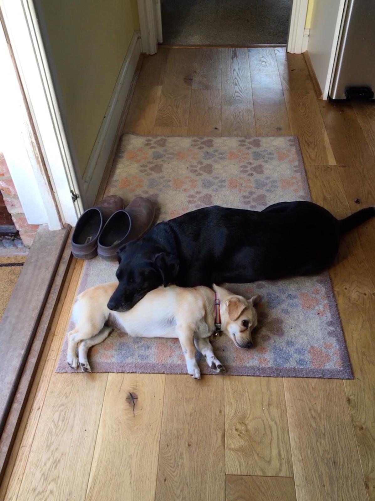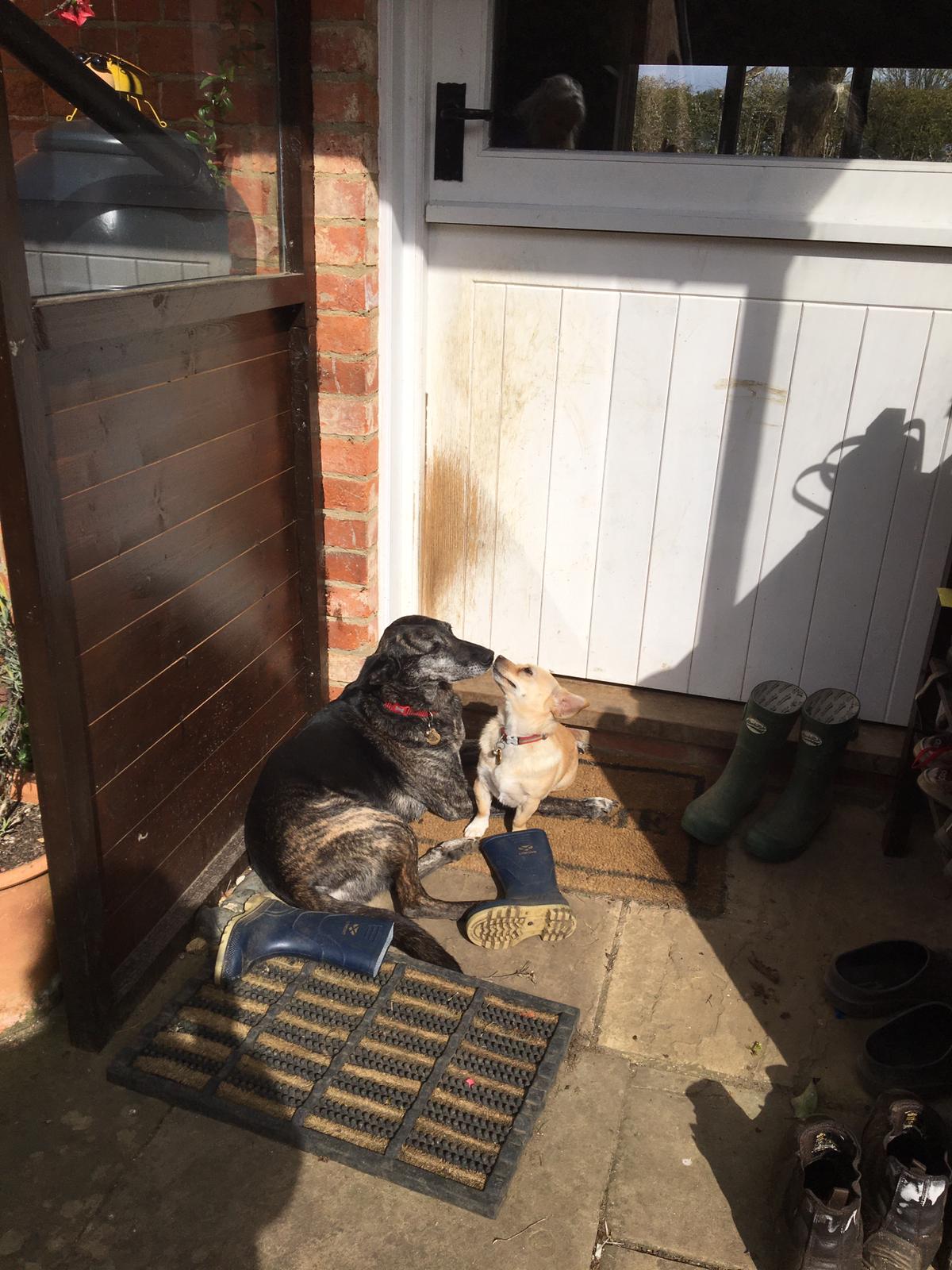 Seven years on Nora has mellowed. She hasn’t tried to bite anyone for a while now, and we have even managed to dissuade her from killing every muntjac deer that wanders through the garden – although she still likes to keep them on their toes for old times’ sake when she thinks we’re not looking. She is extremely loving and affectionate with her human family – it was her desire to please us that eventually overrode her killer instincts despite all the articles on canine behaviour telling us there would never be anything stronger. Ramona has been the love of her life from the very first day, and nothing has changed other than her sense of self-preservation when Ramona suggests a game… Nora is the most obedient of all our dogs, as well as the most prone to misadventure usually by dint of sticking her nose in places it does not belong. Like wasps’ nests, for example.