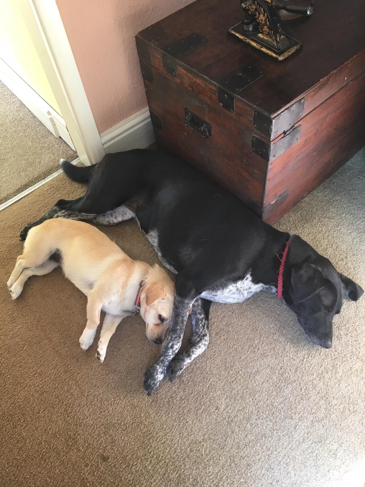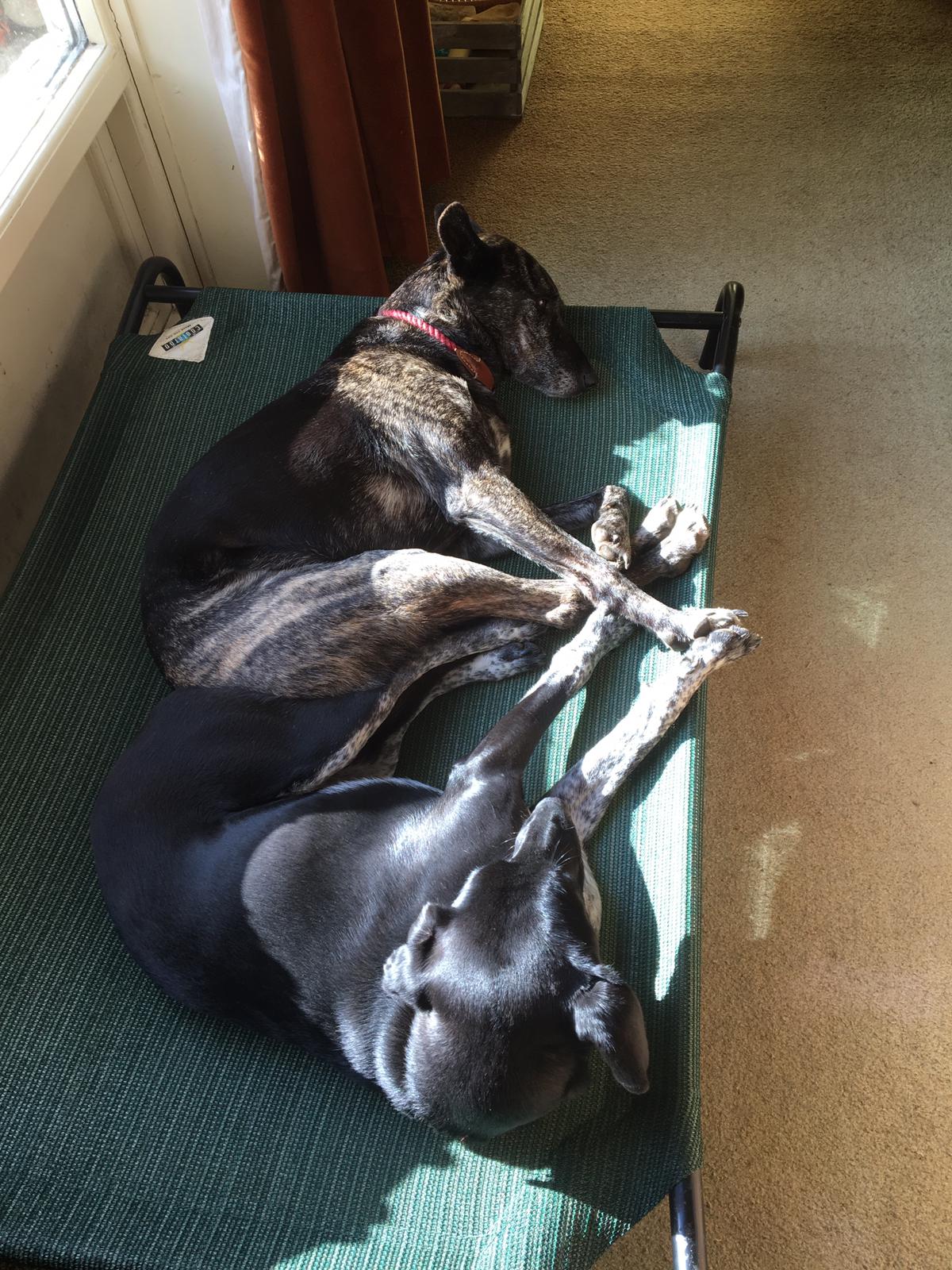 About a month passed before I came to the conclusion that perhaps Ramona would like a friend – an affliction of accumulation that many dog “rehomers” seem to suffer from. I settled on Nora, previously known as Amalia. In her photos she resembled a pointer, in the flesh she resembled a compilation of dog parts from a number of startlingly different dog designs. As she grew, her head remained the same size, while the rest of her went through various stages of incongruousness before settling on a tightly muscled torso balanced on comically bandy legs.